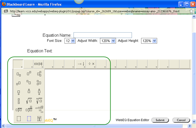 - Click and scroll across the gray buttons to select the type of equation you want to create.